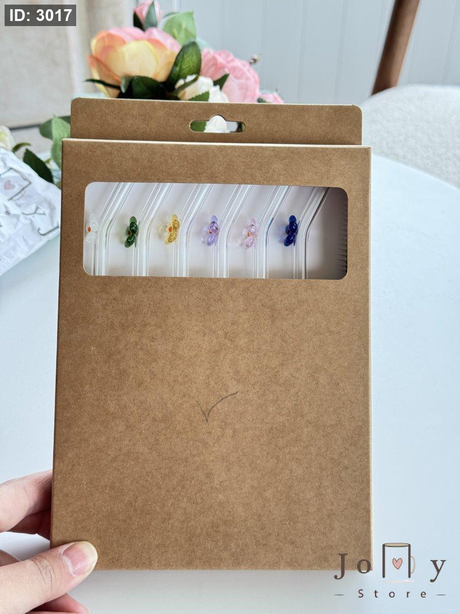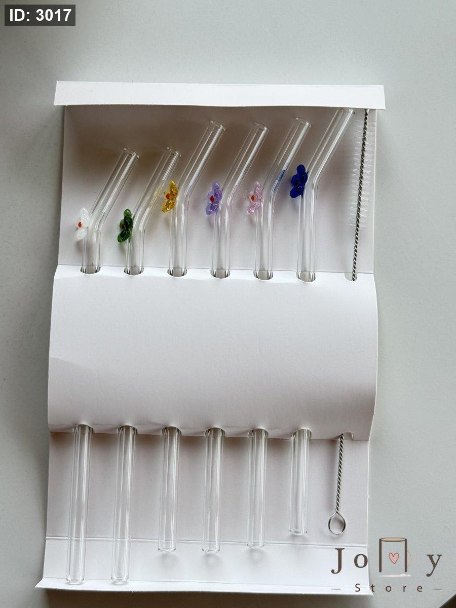 طقم مصاصات ورد 6 مصاصات مع فرشاية تنضيف