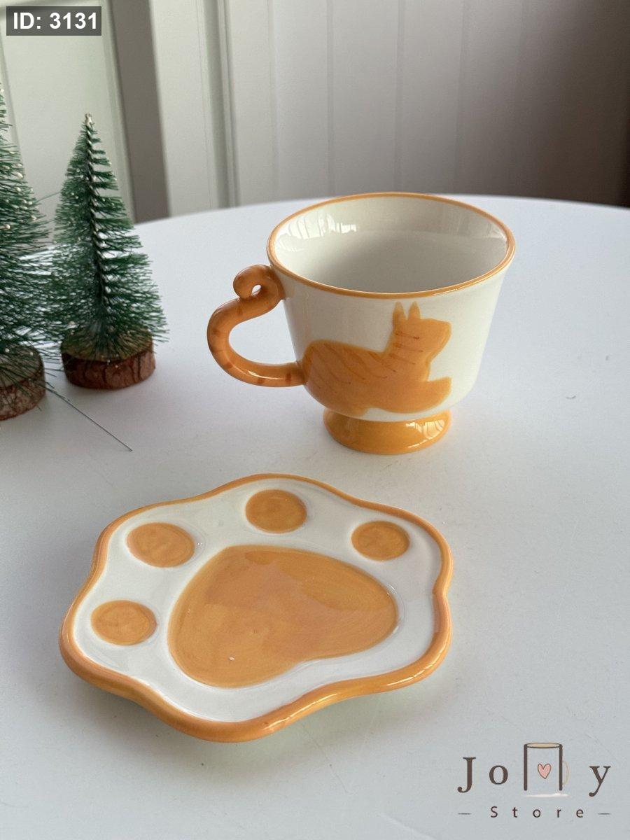 كوب القطة مع صحن حجم متوسط