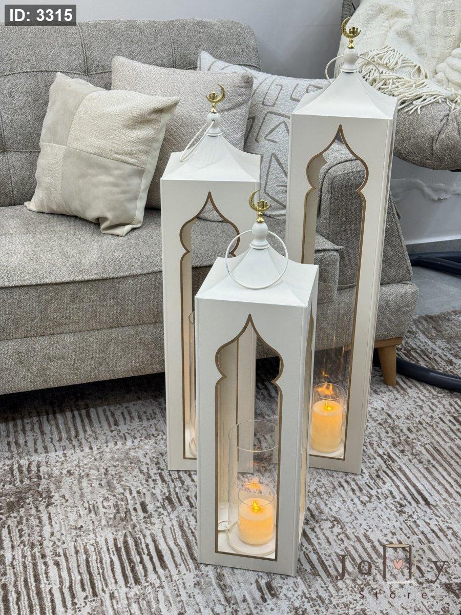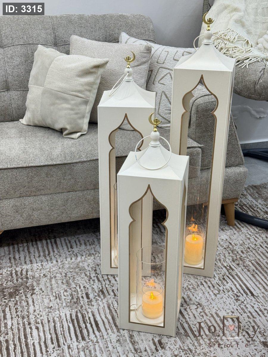 طقم فوانيس حجم كبير معدن 3 قطع بدون شموع