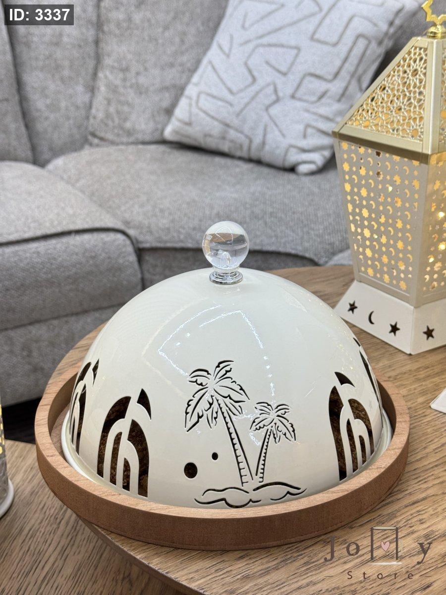مضيفة خشب مع غطاء معدن برسومات نخيل