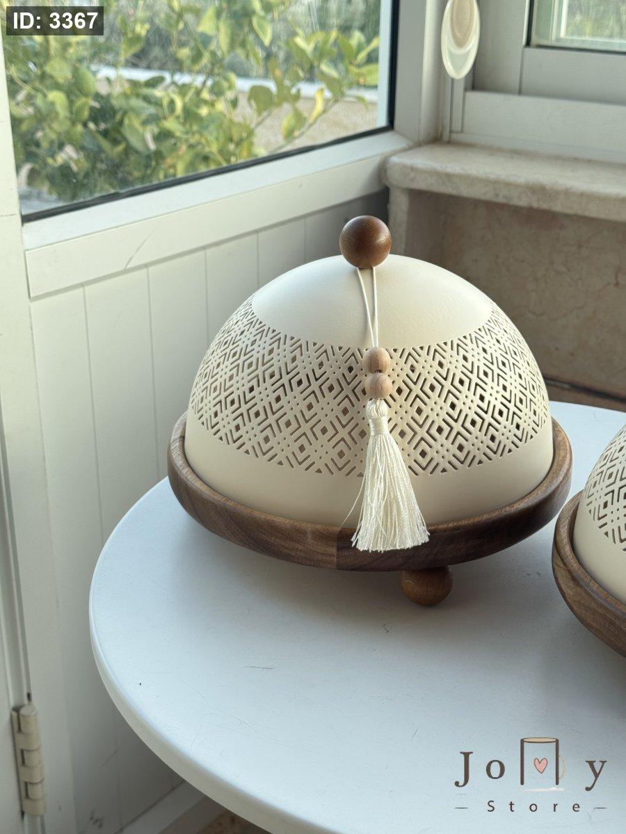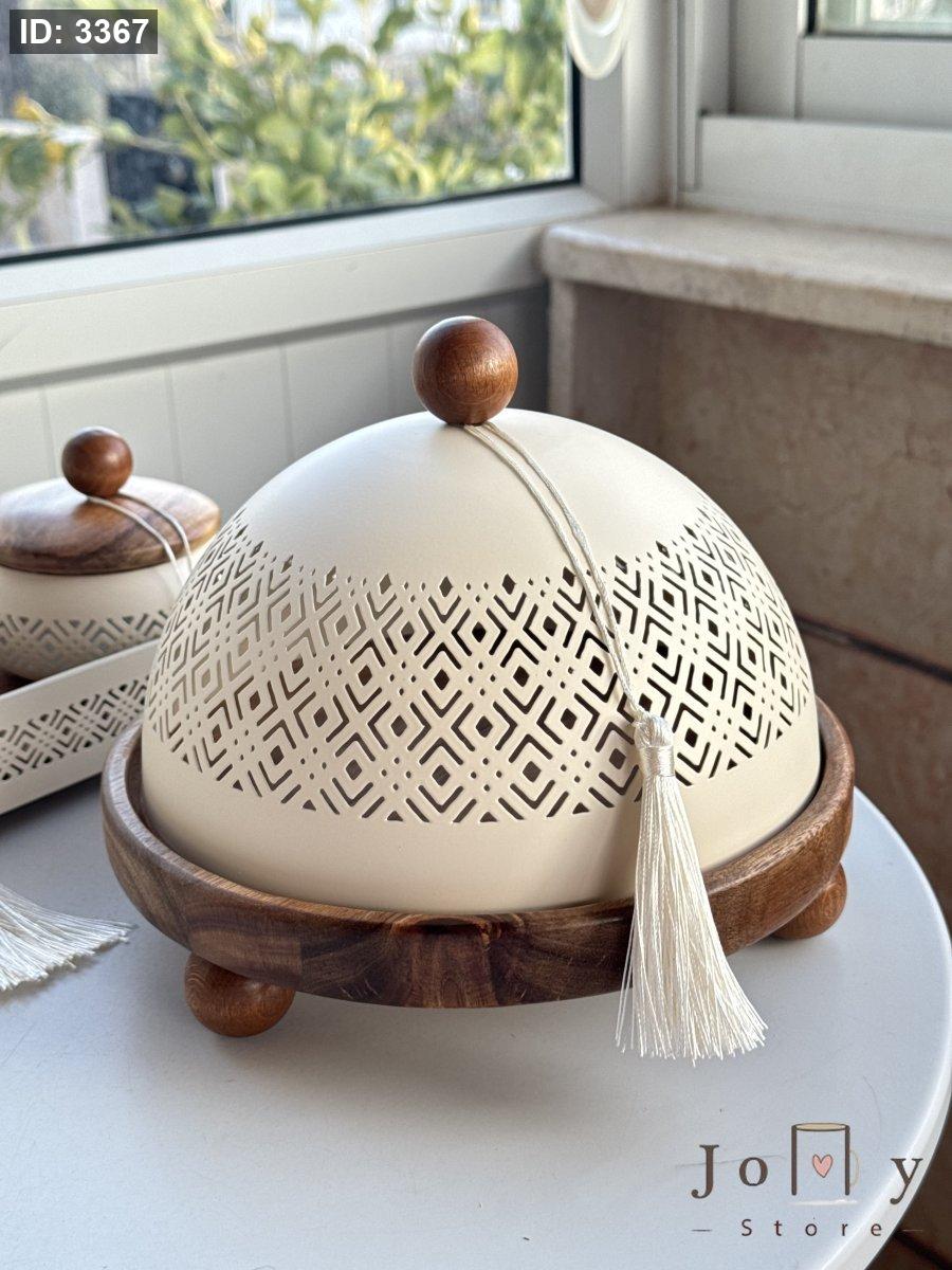 مضيفة قاعدة خشب وغطاء معدن