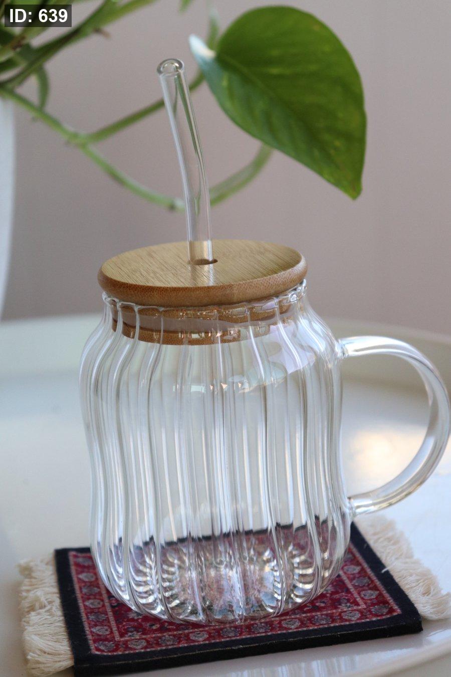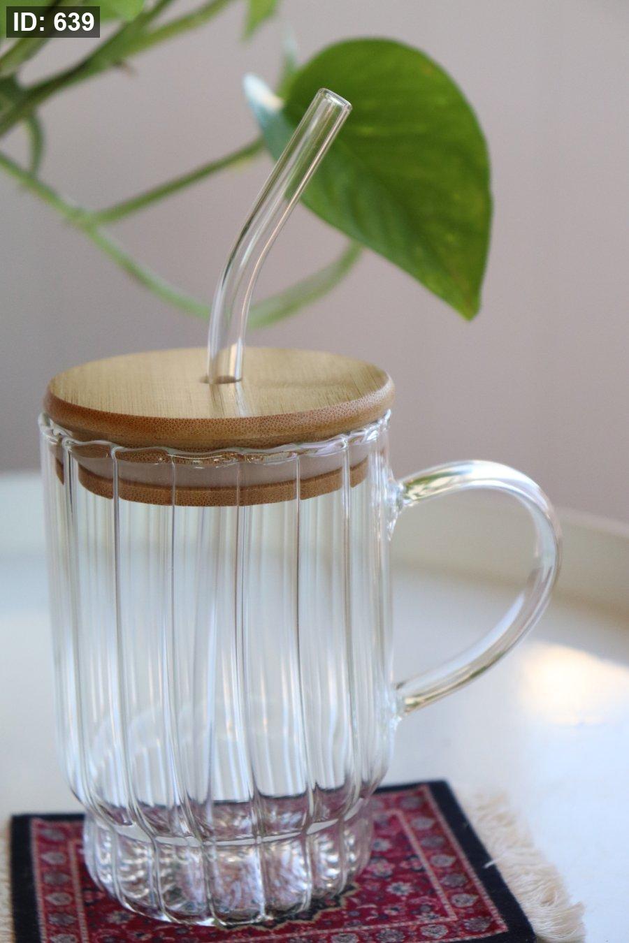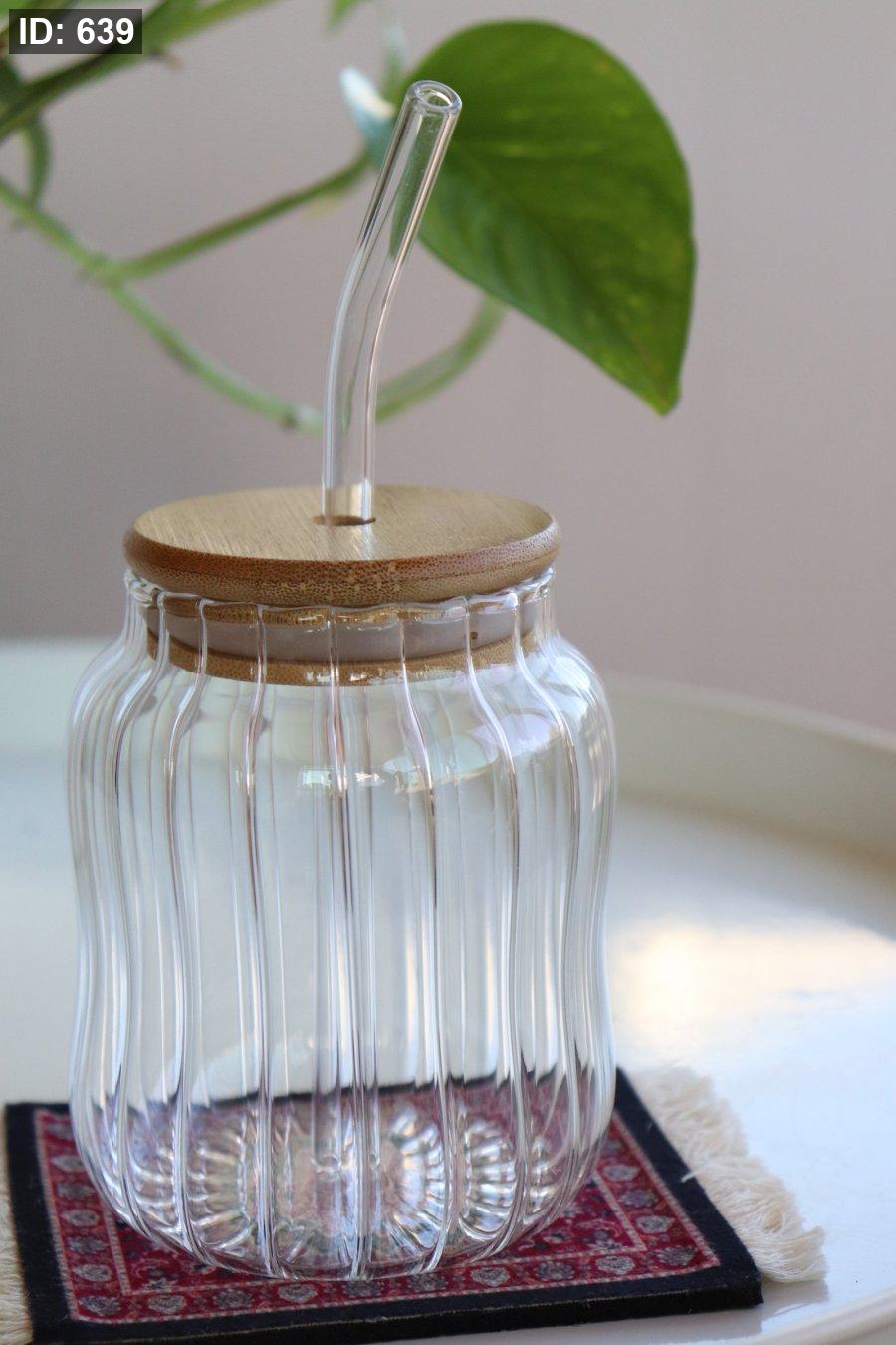 كاسة شفاف وسط بغطاء بامبو